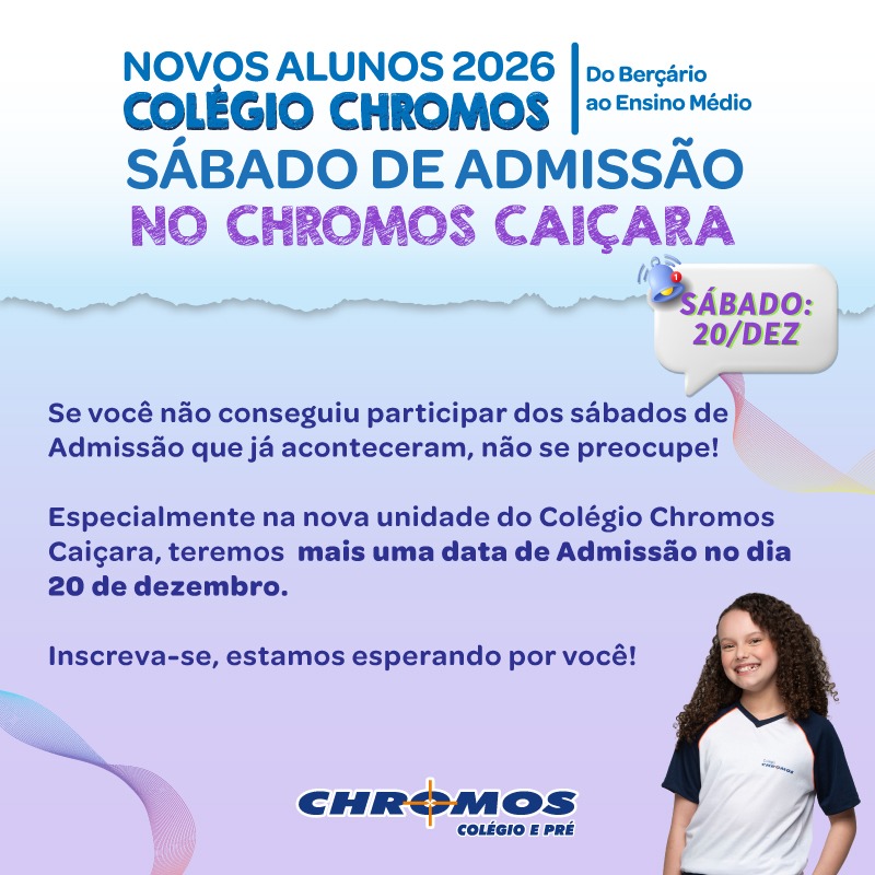 A inscrição para 2026 será realizada através do site: chromos.com.br/admissao, atendimento WhatsApp para matrículas